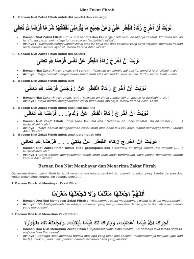 Ada beberapa niat zakat fitrah berdasarkan siapa yang ingin dizakatkan: Niat zakat fitrah untuk istri. Setiap amalan harus dilandasi dengan niat, karena berdasarkan hal itu dapat ditentukan nilai pahala dari. 2.niat zakat fitrah untuk diri sendiri beserta keluarga yang wajib dinafkahi. Niat zakat fitrah sangat penting diketahui oleh kita ummat islam karena zakat hukumnya wajib. 6.niat zakat fitrah untuk orang yang diwakilkan. Zakat fitrah merupakan salah satu dari tiga. Zakat fitrah ini wajib bagi setiap individu yang masih hidup termasuk bayi yang baru lahir. Bacaan niat zakat fitrah idul fitri. Munadi, zakat tersebut memiliki arti untuk menumbuhkan fitrah atau jiwa manusia. Bacaan niat zakat fitrah idul fitri selalu kita lafazkan ketika akan menunaikan rukun islam yang ke tiga. Saat membayarnya, jangan lupa membaca niat dan doa berikut ini. Tata cara membayar zakat fitrah.
